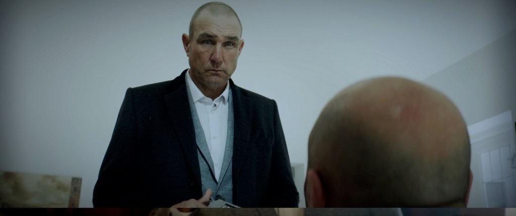 Achilles is idolised by Anthony (Jamie Crew) another social club regular who suffers with mental health issues and has a speech impediment that is difficult to watch in its humorous attempts of portrayal. The film’s major coup is getting ex-professional footballer turned Hollywood actor Vinnie Jones to play Willard Greb, the most heinous of gangland mercenaries, something he does with great ease with such lines as, “I’ll see you Saturday”, which he delivers in his instantly recognisable and uncompromising cadence but who looks slightly less comfortable sending himself up as Lola’s doting hitman boyfriend.