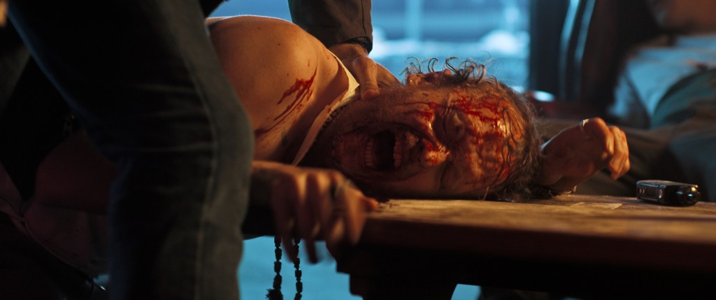 We then jump back nine days to find out what started all of this and to discover who Andy is if not an officially retired army veteran who still has close ties with his old pals. He’s divorced, living in a remote trailer, working a routine job in a hardware store and sees a therapist about his wartime traumas. His ex-wife (Karlina Grace-Paseda) is struggling with looking after their teenage daughter (Saskia Rose), worried about the boys she hangs out with and who’s not willing to take any relationship guidance from her. When the boyfriend (Daniel Davids) comes to pick her up his dealings in a little weed turn out to be a lot more than that ***spoiler alert*** as his father (Kevin Golding) runs the drug syndicate.